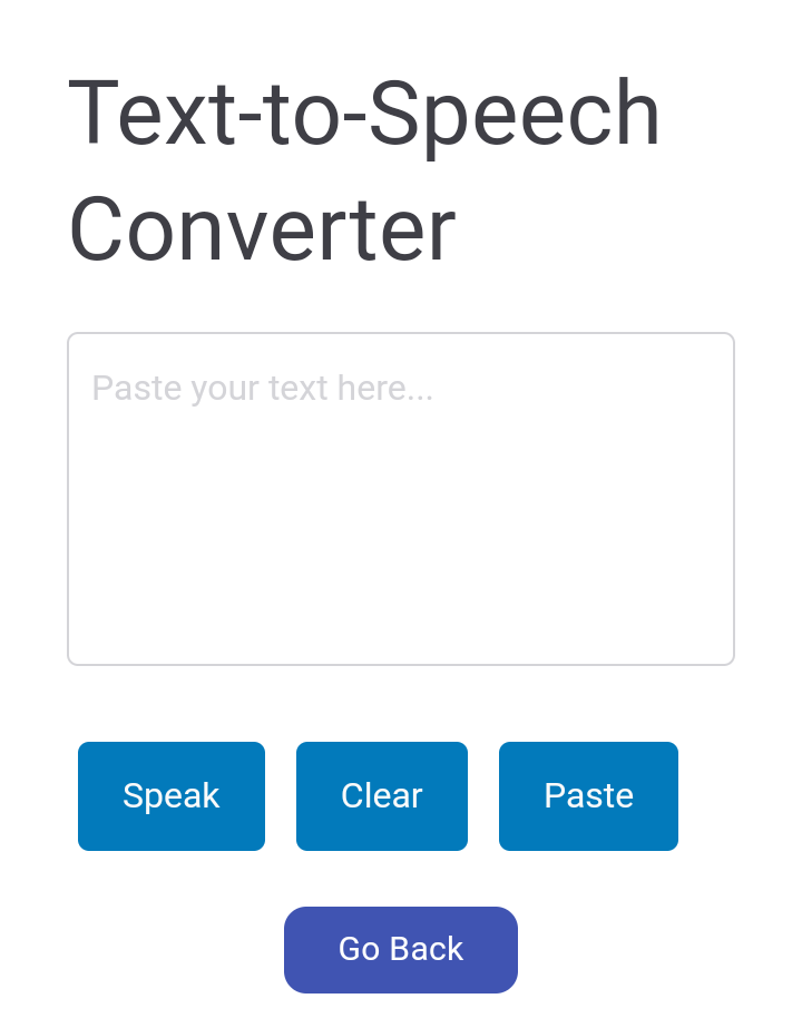 This Text-to-Speech Converter is a powerful yet simple tool designed to make websites more accessible and user-friendly. It enables users to type or paste text and hear it spoken aloud using the built-in Web Speech API. With a clean and responsive interface, visitors can interact effortlessly without needing any external software or plugins.